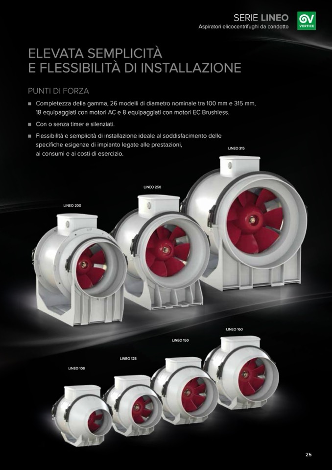 Completezza della gamma, 26 modelli di diametro nominale tra 100 mm e 315 mm,