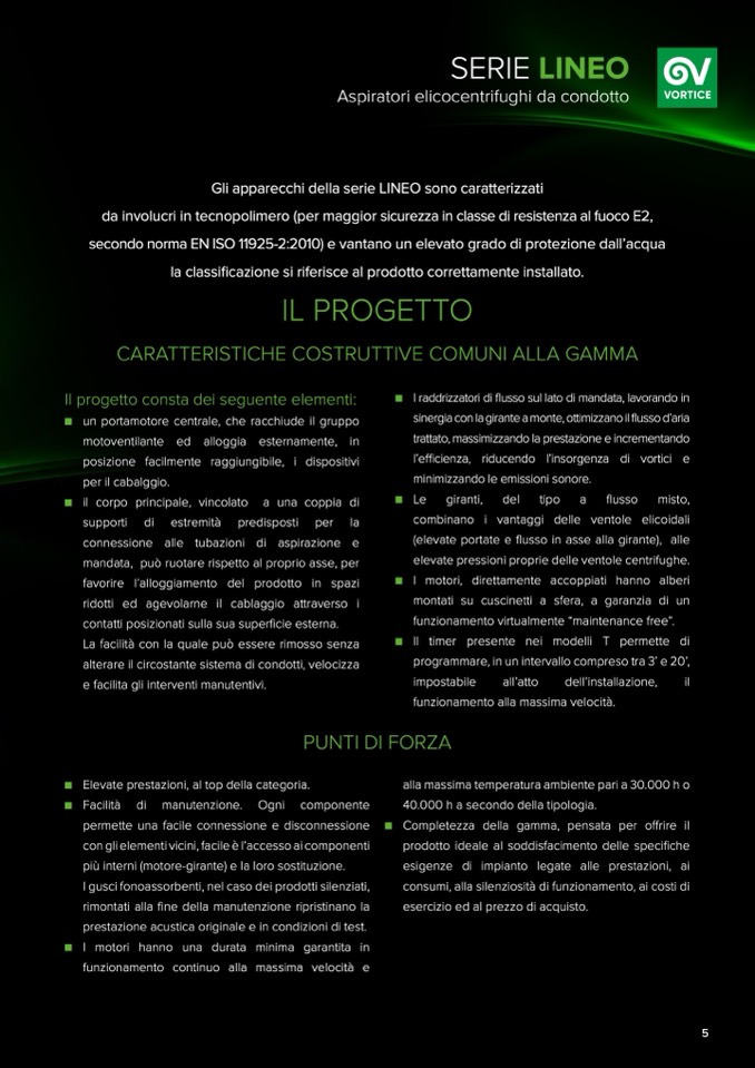 elevate pressioni proprie delle ventole centrifughe.