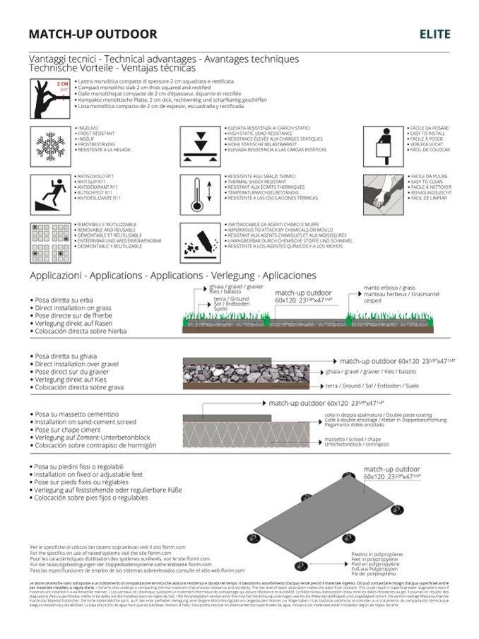 per materiale installato a regola d’arte. / Ceramic tiles undergo a compacting thermal treatment that ensures resistance and durability. The low level of water absorption makes the slabs frost resistant. This could result in superficial water stagnations even if