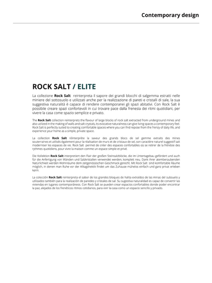 Die Kollektion Rock Salt interpretiert den Flair der großen Steinsalzblöcke, die im Untertagebau gefördert und auc