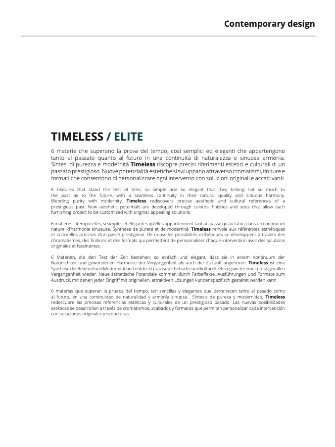 naturel d’harmonie sinueuse. Synthèse de pureté et de modernité, Timeless renvoie aux références esthétiques