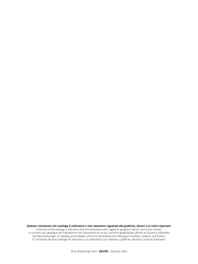 Quanto contenuto nel catalogo è indicativo e non esaustivo riguardo alle grafiche, decori e ai colori riportati.