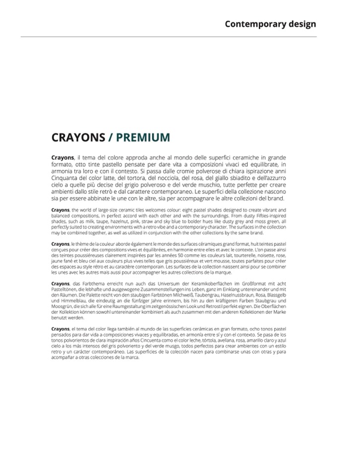 Crayons, das Farbthema erreicht nun auch das Universum der Keramikoberflächen im Großformat mit ach