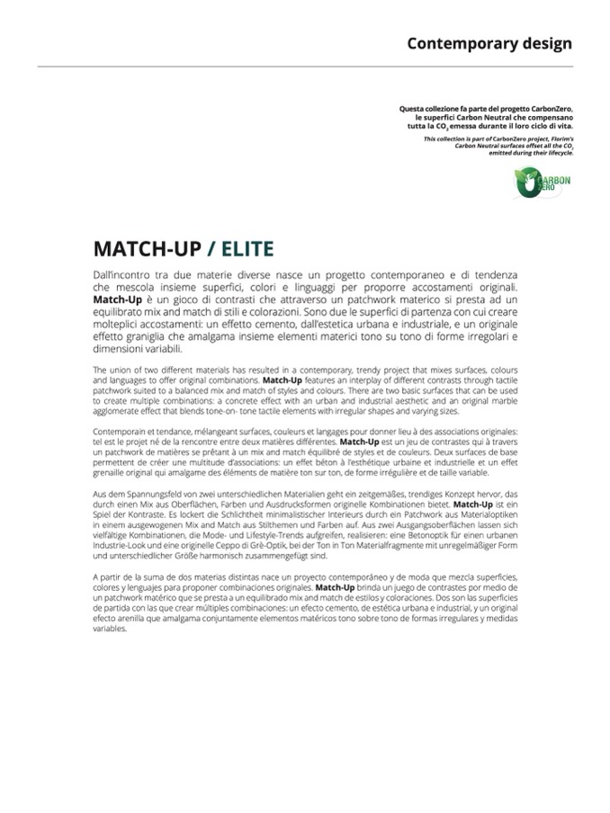and languages to offer original combinations. Match-Up features an interplay of different contrasts through tactil