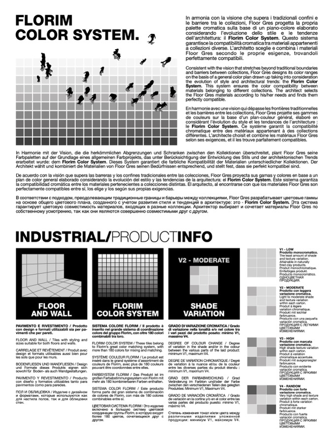 erarbeitet wurde: dem Florim Color System. Dieses System garantiert die farbliche Kompatibilität der Materialien unterschiedlicher Kollektionen. Der