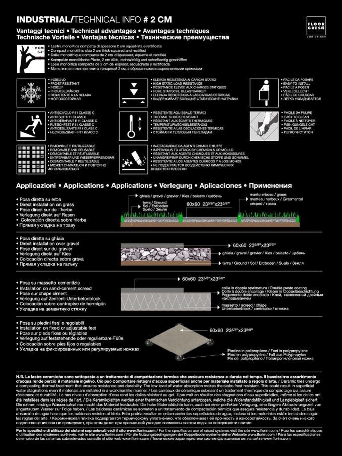 d’utilisation des systèmes surélevés, voir le site www.florim.com / Für die Nutzungsbedingungen der Doppelbodensysteme siehe Webseite www.florim.com / Para las especificaciones