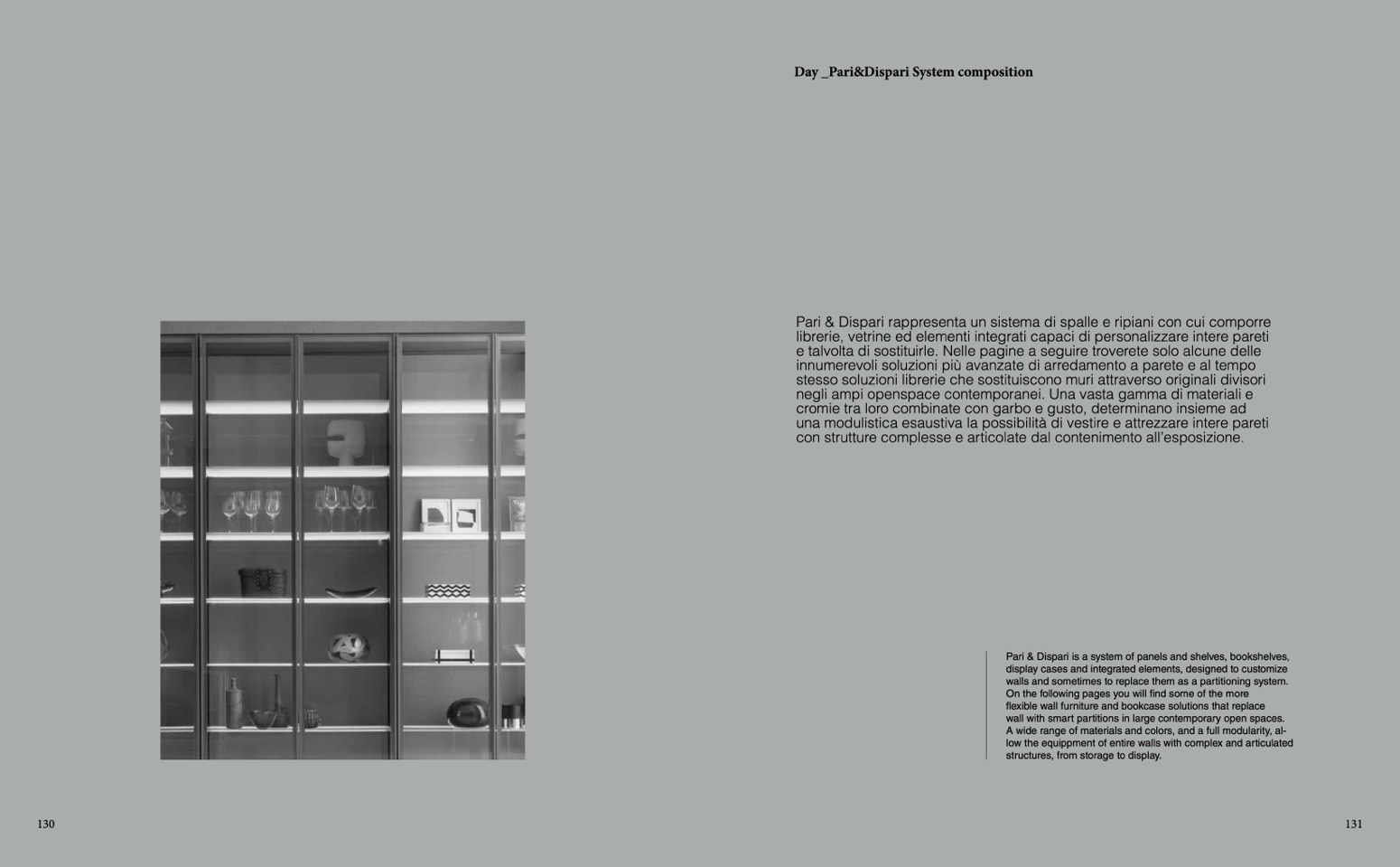 Pari & Dispari rappresenta un sistema di spalle e ripiani con cui comporre