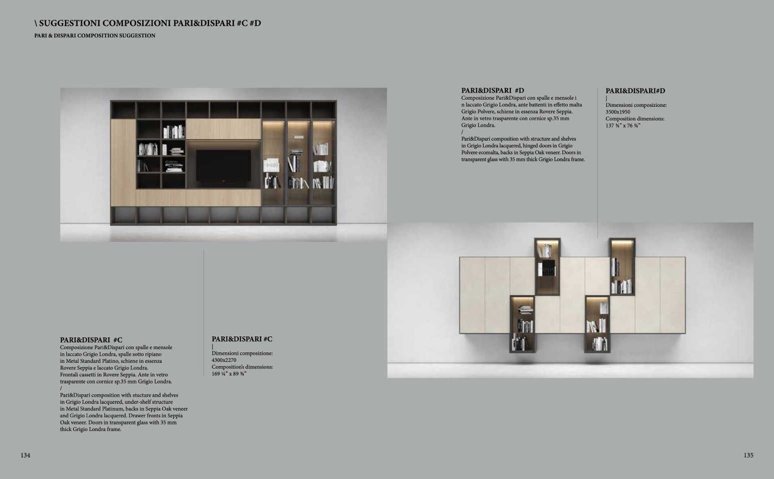 Polvere ecomalta, backs in Seppia Oak veneer. Doors in