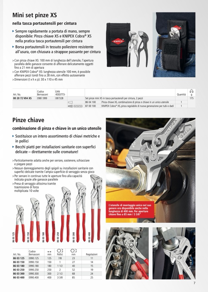 XS, pinza regolabile di nuova generazione per tubi e dadi