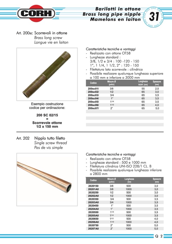 - Filettatura cilindrica UNI-ISO 228/1 CL. B
