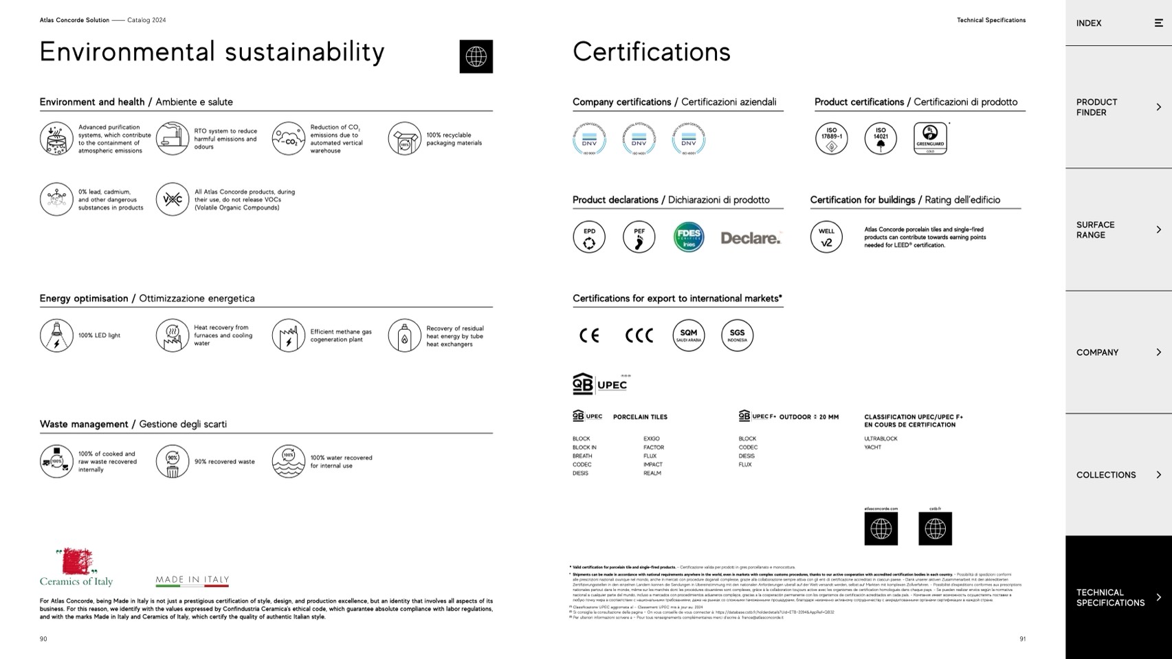 Valid certification for porcelain tile and single-fired products. - Certificazione valida per prodotti in gres porcellanato e monocottura.