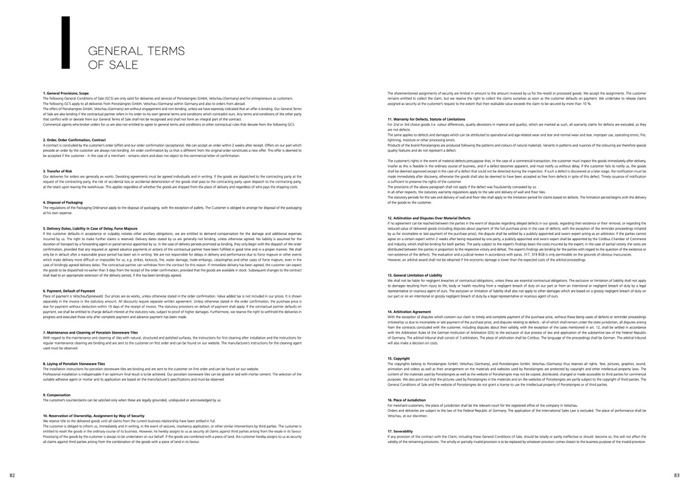 The following GCS apply to all deliveries from Porcelaingres GmbH, Vetschau (Germany) within Germany and also to orders from abroad.