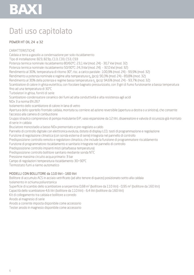 Capacità dello scambiatore 4,6 litri (bollitore da 110 litri) - 6,4 litri (bollitore da 160 litri)