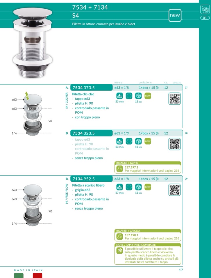 tipologia della piletta anche su articoli gi
