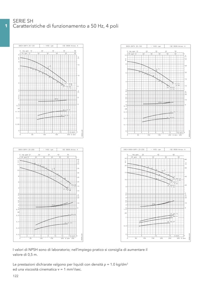 I valori di NPSH sono di laboratorio; nell’impiego pratico si consiglia di aumentare il