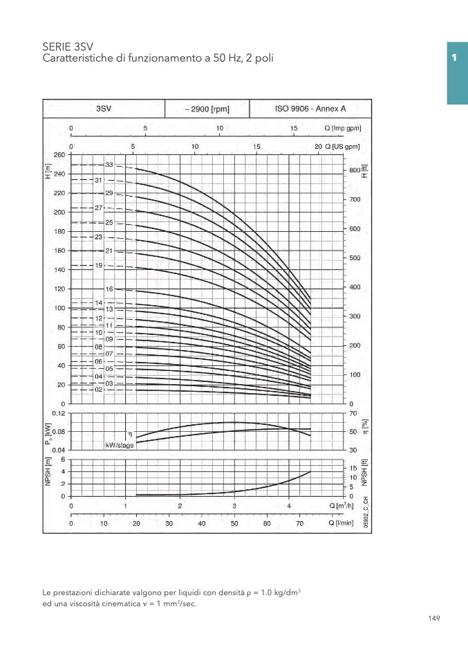 Le prestazioni dichiarate valgono per liquidi con densità ρ = 1.0 kg/dm
