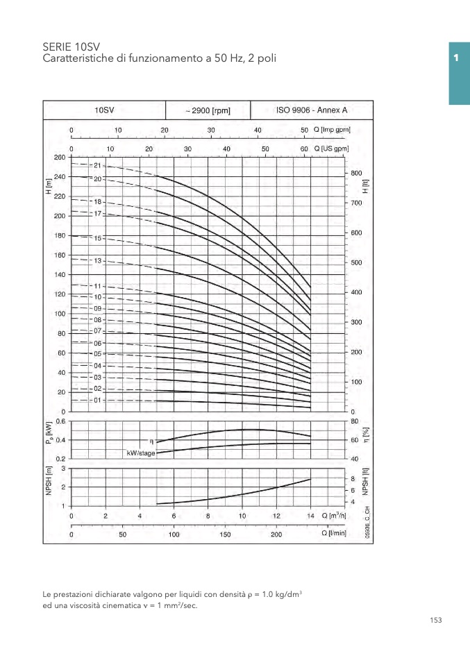 Le prestazioni dichiarate valgono per liquidi con densità ρ = 1.0 kg/dm