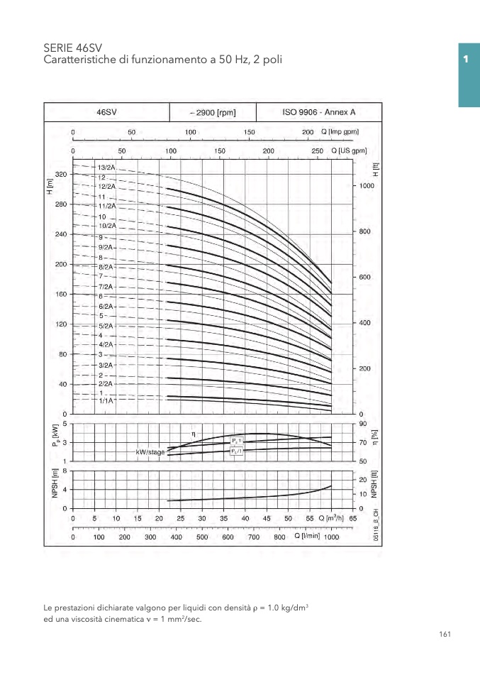 Le prestazioni dichiarate valgono per liquidi con densità ρ = 1.0 kg/dm