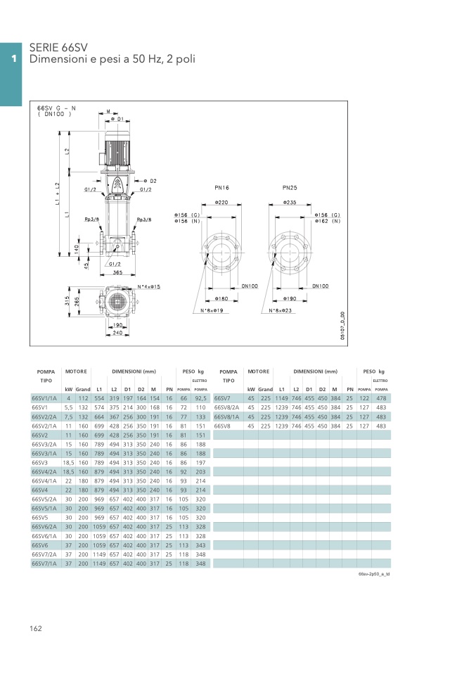 1 Dimensioni e pesi a 50 Hz, 2 poli