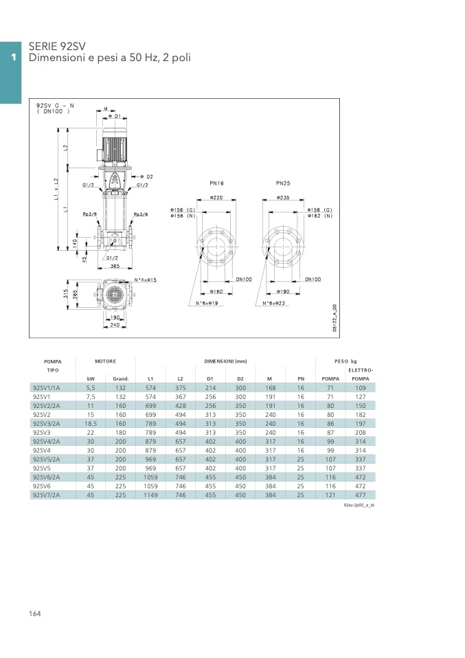 1 Dimensioni e pesi a 50 Hz, 2 poli