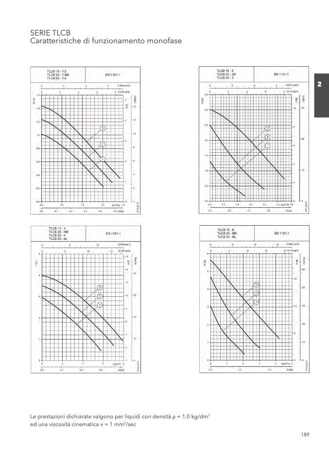 Le prestazioni dichiarate valgono per liquidi con densità ρ = 1.0 kg/dm