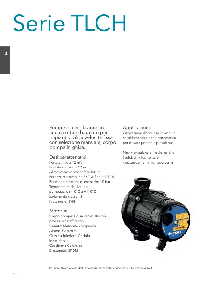 Per una lista completa delle informazioni tecniche consultare il sito www.lowara.it