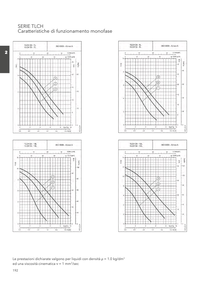 Le prestazioni dichiarate valgono per liquidi con densità ρ = 1.0 kg/dm