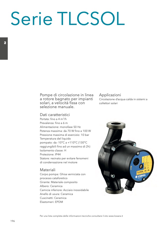 Per una lista completa delle informazioni tecniche consultare il sito www.lowara.it