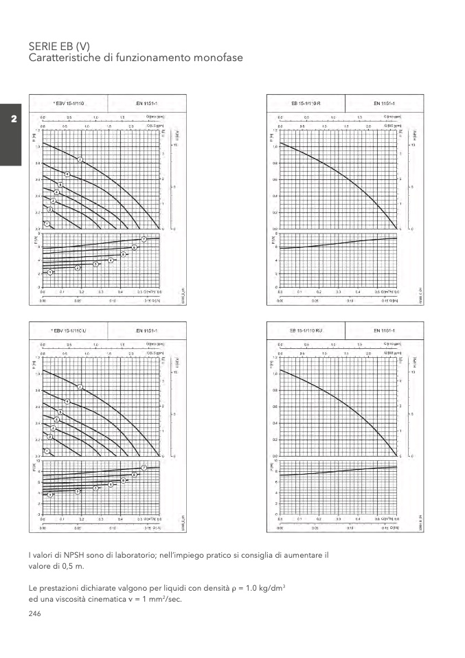 I valori di NPSH sono di laboratorio; nell’impiego pratico si consiglia di aumentare il