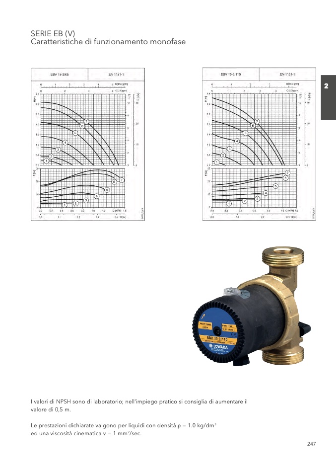 I valori di NPSH sono di laboratorio; nell’impiego pratico si consiglia di aumentare il