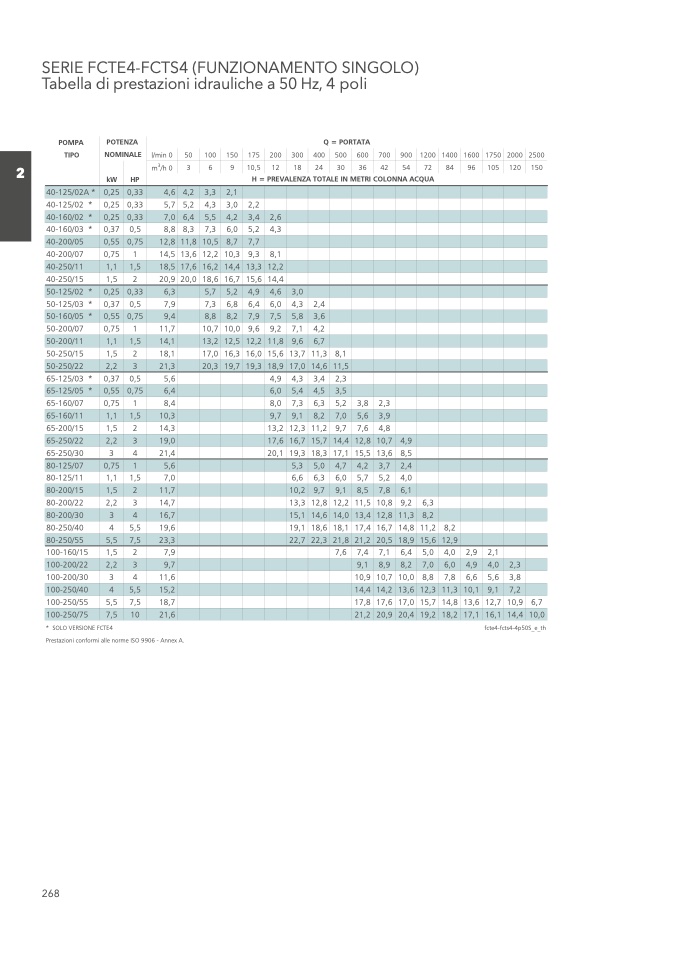Prestazioni conformi alle norme ISO 9906 - Annex A.