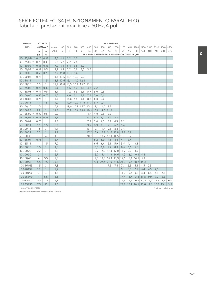 NOMINALE l/min0 100 200 300 350 400 600 700 900 1000 1100 1600 1800 2400 3000 3500 4000 4600