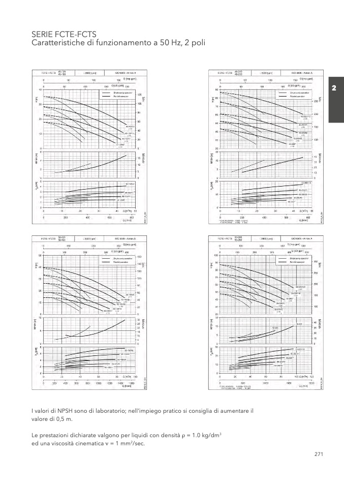 I valori di NPSH sono di laboratorio; nell’impiego pratico si consiglia di aumentare il