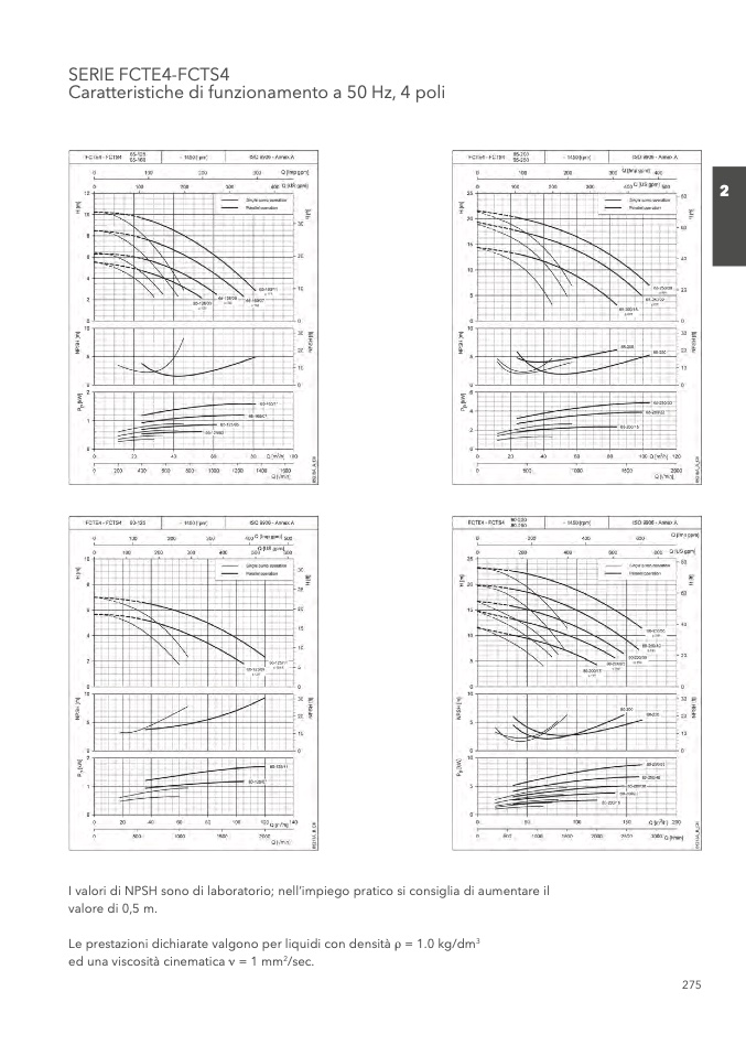 I valori di NPSH sono di laboratorio; nell’impiego pratico si consiglia di aumentare il