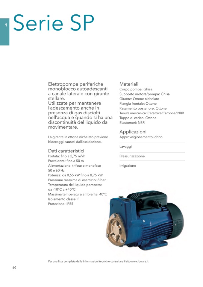 Per una lista completa delle informazioni tecniche consultare il sito www.lowara.it