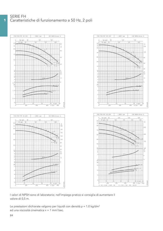 I valori di NPSH sono di laboratorio; nell’impiego pratico si consiglia di aumentare il