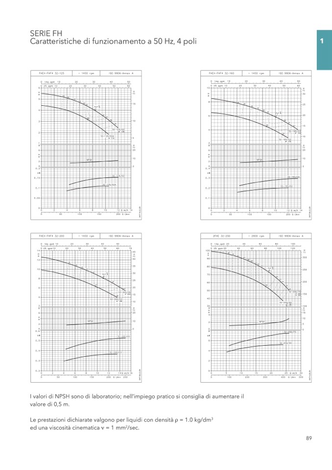 I valori di NPSH sono di laboratorio; nell’impiego pratico si consiglia di aumentare il