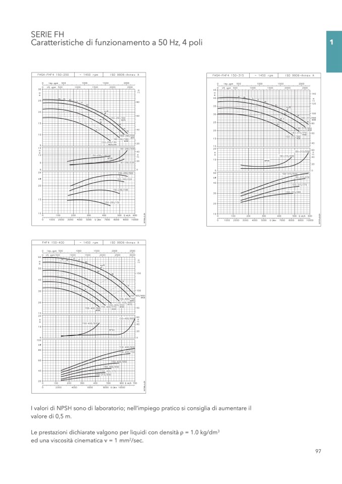 I valori di NPSH sono di laboratorio; nell’impiego pratico si consiglia di aumentare il