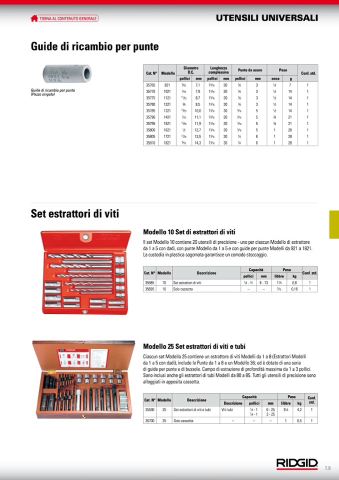 da 1 a 5 con dadi, con punte Modello da 1 a 5 e con guide per punte Modelli da 921 a 1821.