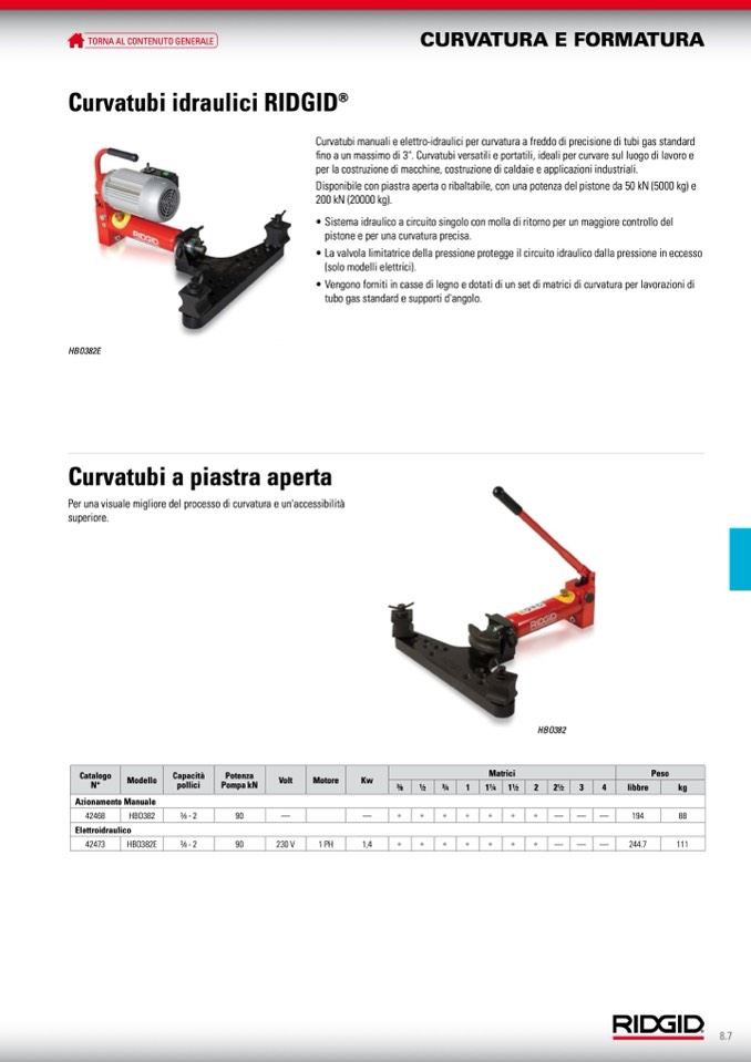 fino a un massimo di 3". Curvatubi versatili e portatili, ideali per curvare sul luogo di lavoro e