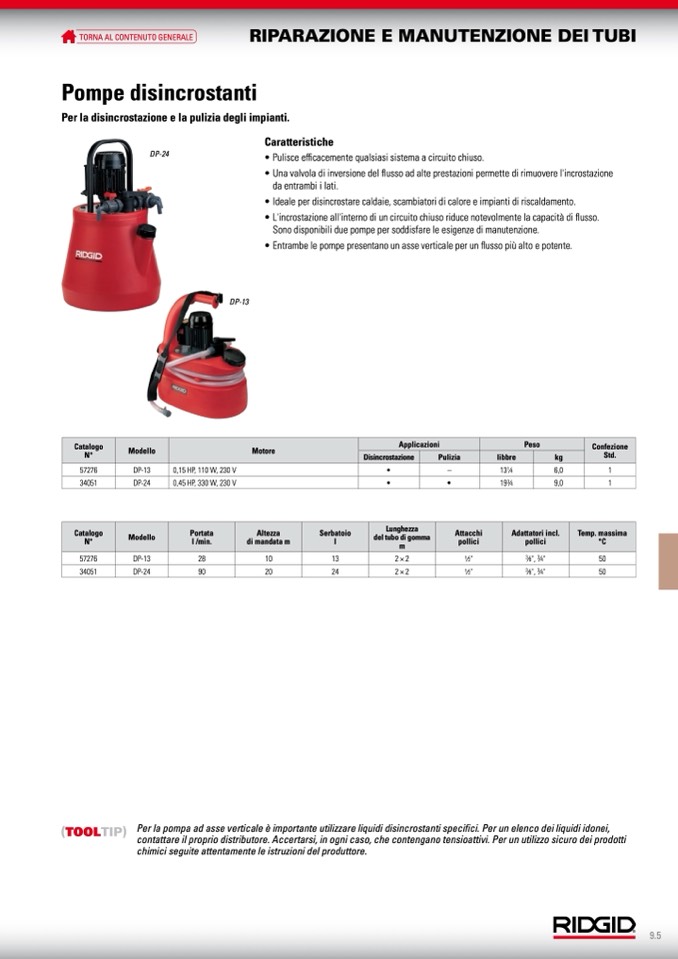 Per la pompa ad asse verticale è importante utilizzare liquidi disincrostanti specifici. Per un elenco dei liquidi idonei,