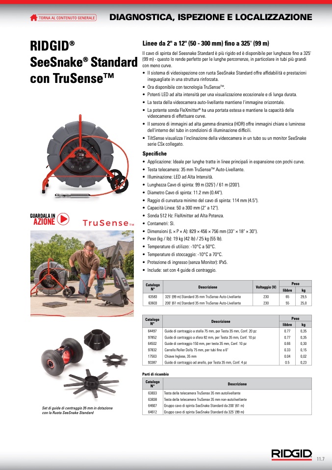 • Il sistema di videoispezione con ruota SeeSnake Standard offre affidabilità e prestazioni