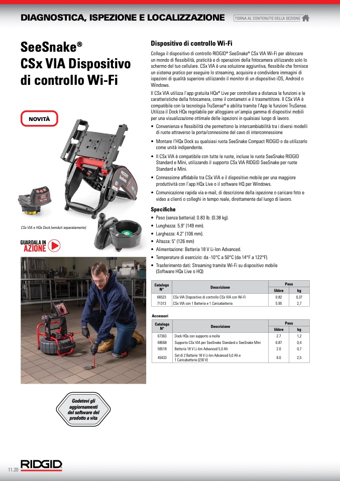 • Il CSx VIA è compatibile con tutte le ruote, incluse le ruote SeeSnake RIDGID
