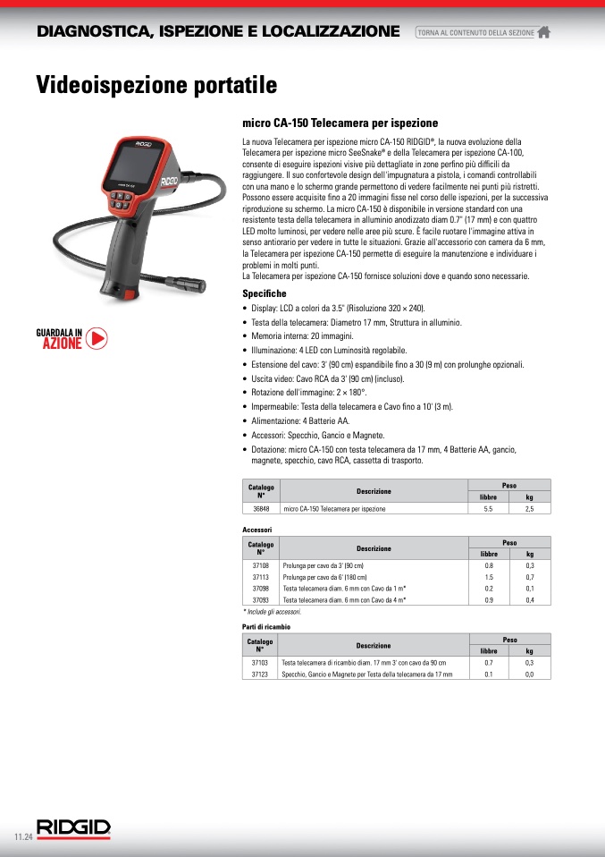 la Telecamera per ispezione CA-150 permette di eseguire la manutenzione e individuare i