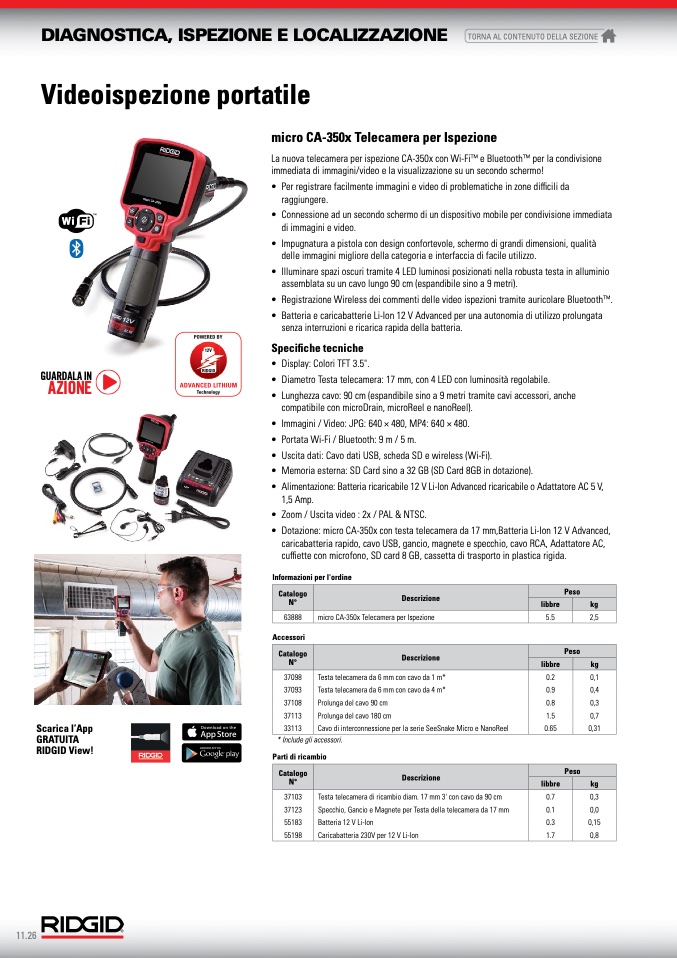 • Dotazione: micro CA-350x con testa telecamera da 17 mm,Batteria Li-Ion 12 V Advanced,