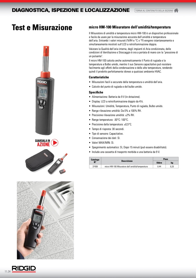 Il Misuratore di umidità e temperatura micro HM-100 è un dispositivo professionale