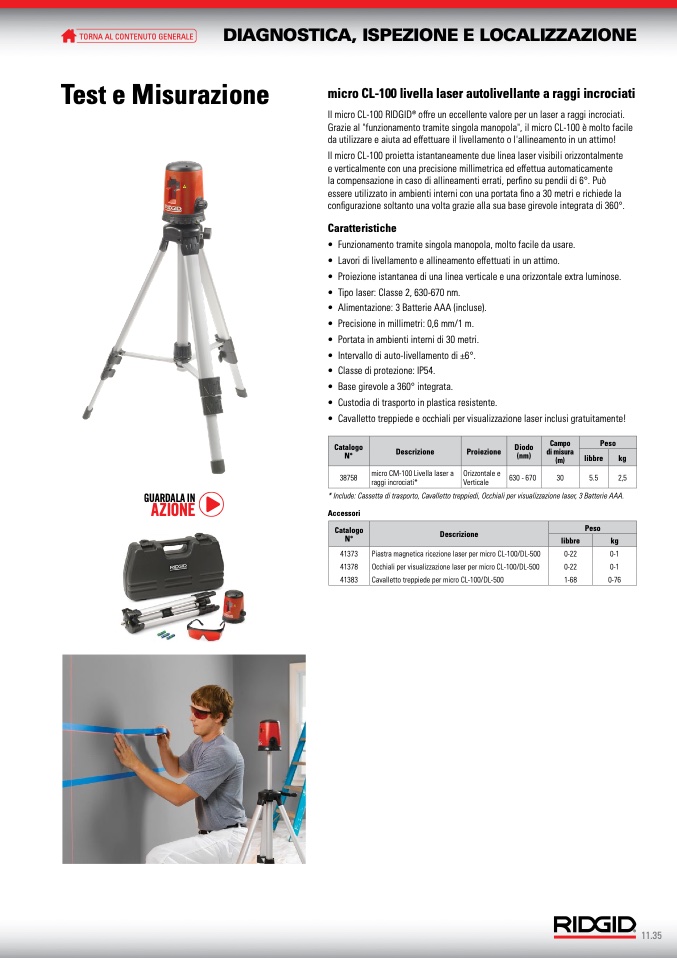 * Include: Cassetta di trasporto, Cavalletto treppiedi, Occhiali per visualizzazione laser, 3 Batterie AAA.