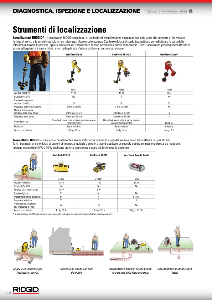 telecamera durante l'ispezione, oppure usarla con un trasmettitore di linea per trovare i servizi sotto traccia. Questi localizzatori possono anche trovare le