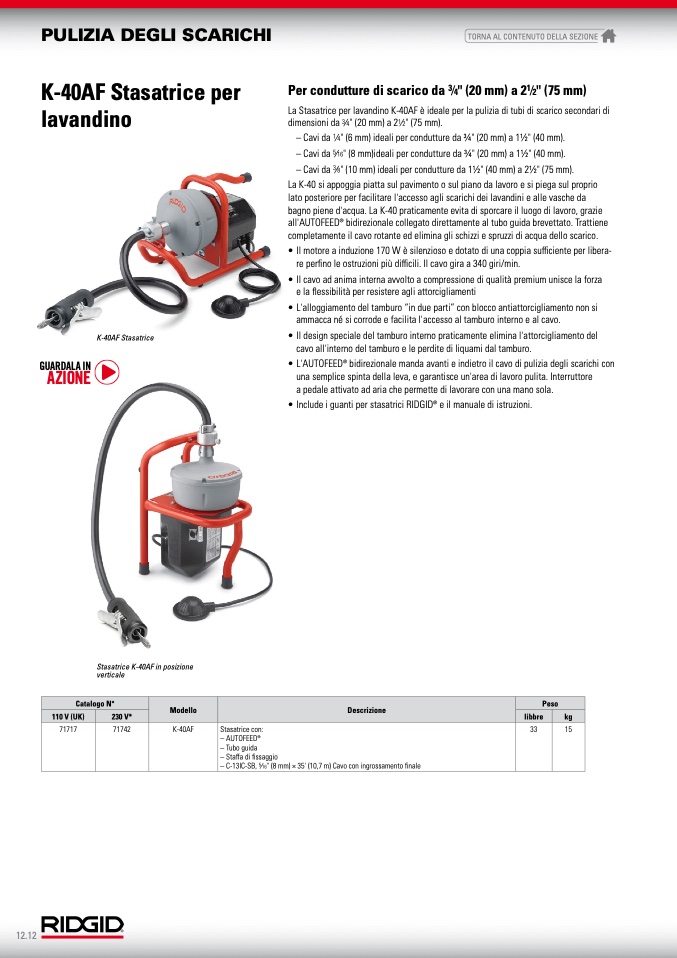 • L'AUTOFEED® bidirezionale manda avanti e indietro il cavo di pulizia degli scarichi con