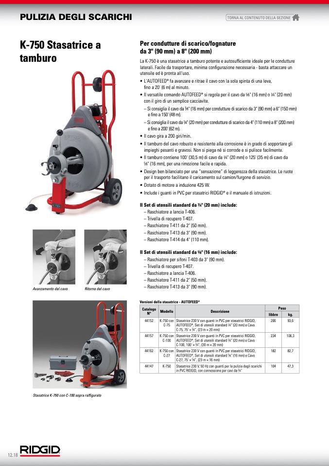 • L'AUTOFEED® fa avanzare e ritrae il cavo con la sola spinta di una leva,